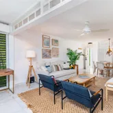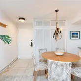 located in the heart of Key Biscayne. This fully furnished residence combines contemporary finishes with a warm, homey feel, featuring white marble floors, Brazilian quartz countertops, and custom cabinetry. Large windows flood the space with natural light, while the den with a queen Murphy bed offers the flexibility of a second bedroom. Street-level entry gives it the comfort and privacy of a home. Enjoy FOB beach access just a 5-minute walk away, plus a pool, assigned parking, and free laundry. Smart lock with camera for fingerprint, code, key fob, or app entry. Pet friendly. Available for short-term stays of 3 months or more.