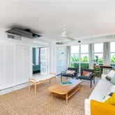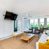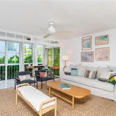located in the heart of Key Biscayne. This fully furnished residence combines contemporary finishes with a warm, homey feel, featuring white marble floors, Brazilian quartz countertops, and custom cabinetry. Large windows flood the space with natural light, while the den with a queen Murphy bed offers the flexibility of a second bedroom. Street-level entry gives it the comfort and privacy of a home. Enjoy FOB beach access...Stylish and inviting corner lanai in a quiet 10-unit boutique building, perfectly