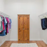 Walk in pantry with wood shelving