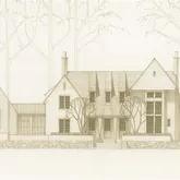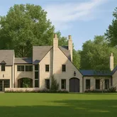 Elevated above the landscape, Lot #3 offers a commanding presence atop a gentle rise. The proposed 8,500± SF residence blends transitional architecture with timeless materials, creating a sophisticated yet serene hilltop estate. A daylight terrace level follows the natural topography, allowing for recreation or guest quarters below grade. The design includes a large flat front lawn, a smaller elevated pool, and layered landscape architecture that merges seamlessly with the surrounding hardwood forest. Architectural Vision & Location