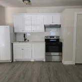 1-bedroom unit (downstairs): Features a spacious living area, full kitchen, and bathroom