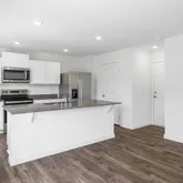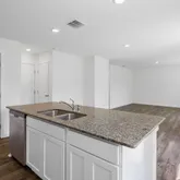 bathroom. The second level also features three secondary bedrooms with an additional bathroom. Enjoy the convenience of having washer and dryer hookups upstairs. The main level has a flex room that could be used as a study or designated formal dining area as well as a powder room located directly off the foyer. This floorplan offers open concept living, with the expansive great room looking over the modern kitchen. Windows and doors at the back of the home bathe the kitchen area in natural sunlight. The kitchen is an entertainer's dream with a sleek island that features countertop seating. It also features a spacious pantry with plenty of room for grocery items.