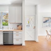 The spacious, sun-soaked living room invites relaxation, while the adjacent bay-windowed family room is ideal for intimate dinners or hosting friends and loved ones. Featuring sleek stainless steel appliances, butcher block countertops, cork floors and ample cabinet space, the modern farmhouse kitchen is your backdrop for preparing family favorites and fresh culinary masterpieces. Enjoy informal meals in the adjoining breakfast room with wraparound windows.
