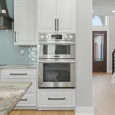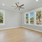 Step inside to discover high-end finishes throughout, including engineered wide-plank French Oak hardwood flooring, custom cabinetry, and solid core doors for added durability and noise reduction. The home's thoughtful design includes a central vacuum system with a hideaway hose, an elevator for seamless access across all floors, and exquisite crown molding. The entryway, exterior entry, and lanai feature beautifully stained pine ceilings, adding warmth and character to the space. The chef's kitchen is a masterpiece, boasting Quartzite countertops, Signature Kitchen Suite appliances, and an induction cooktop with a convection double oven/microwave. A spacious island provides additional storage on the stool side, while the built-in refrigerator/freezer includes both standard ice cubes and specialty ice balls.