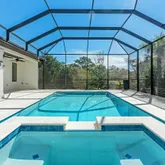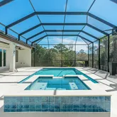 Outdoor living is just as impressive, with a 14 x 25 saltwater heated pool enclosed within a screened lanaifully app-controlled via Hayward. Shellstone pool decking, an outdoor shower, and coded side yard entry door enhance both convenience and security. Thoughtfully placed accent lighting highlights decks and outdoor spaces for an inviting ambiance.
