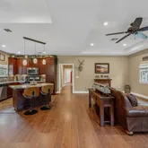 - Interior Features: Tray Ceilings, Ceiling Fan(s), Double Vanity, Eat In Kitchen, High Ceilings, Kitchen Island, Main Level Master, No Interior Steps, Open Floorplan, Recessed Lighting, Soaking Tub