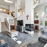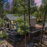 A home built for memories. The main floor offers a spacious primary suite with a cozy fireplace, while vaulted ceilings and a wall of windows flood the living room with natural light and serene forest views. Upstairs you'll find a roomy loft with its own bedroom and full bath, while the finished walkout basement provides two more bedrooms, a half bath, and a private balcony ideal for guests or family Space for Everyone and Everything! Private solely owned well! An oversized garage gives you room for all your toys, and above it, an additional guest suite currently serves as a recreational game room. The kitchen features warm cabinetry, stainless appliances, and plenty of space to gather-imagine making breakfast and stepping out onto the deck to enjoy coffee overlooking the trees. Multiple fireplaces, flexible living areas, and over 3,300 square feet ensure comfort for everyone. Upgrades, Acreage, and Opportunity. Sitting on 1.17 acres sloping gently to a creek, this home shines with brand-new updates: exterior paint, new flooring, rebuilt patio/deck, septic pump, and well pump (2024). Past upgrades include a new roof, catwalk, AC addition, and expanded bedrooms and baths. Pride of ownership is clear, and the potential is limitless, move right in, rent it out, or take it to the next level with your dream remodel. This home won't last- relaxation, adventure, and unforgettable memories await! Don't let your dream mountain cabin retreat slip away... book your private tour today and step into forest serenity. Your oasis among the pines awaits, come experience it firsthand! Seller carryback seller financing available