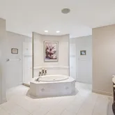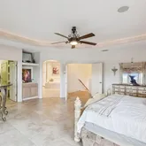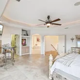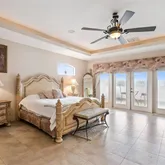 • Luxurious master retreat with tray ceiling, private balcony overlooking the property, spa-like en-suite bath, and massive walk-in closet