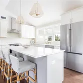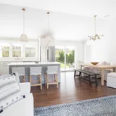 Nestled in the North Fork’s quaint village, surrounded by farm stands, vineyards, and the perfect backdrop for family and friends, this newly renovated 2025 beach cottage combines modern luxury with coastal charm. Featuring an open-concept living area with wood floors throughout, a sleek gas fireplace, quartz countertops, and Bosch appliances including a gas stove, the home was renovated by skilled local craftsmen with attention to every detail....Charming 2025 Beach Cottage in the Heart of Mattituck