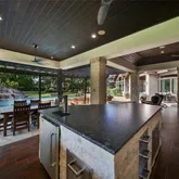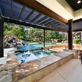 - Exterior Features: Covered Patio, Deck, Fully Fenced, Fence, Spa/Hot Tub, Sprinkler Irrigation, Outdoor Kitchen, Porch, Patio, Private Yard, Tennis Courts