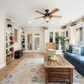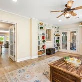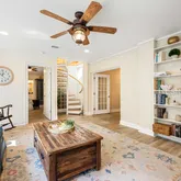 - Interior Features: Bookcases, BuiltInFeatures, CeilingFans, Fireplace, MainLevelPrimary, MultipleClosets, SmoothCeilings, WindowTreatments, EntranceFoyer, Loft