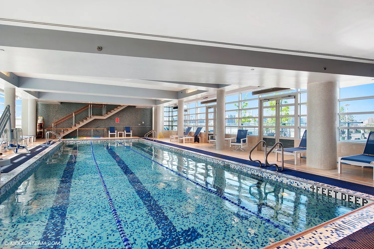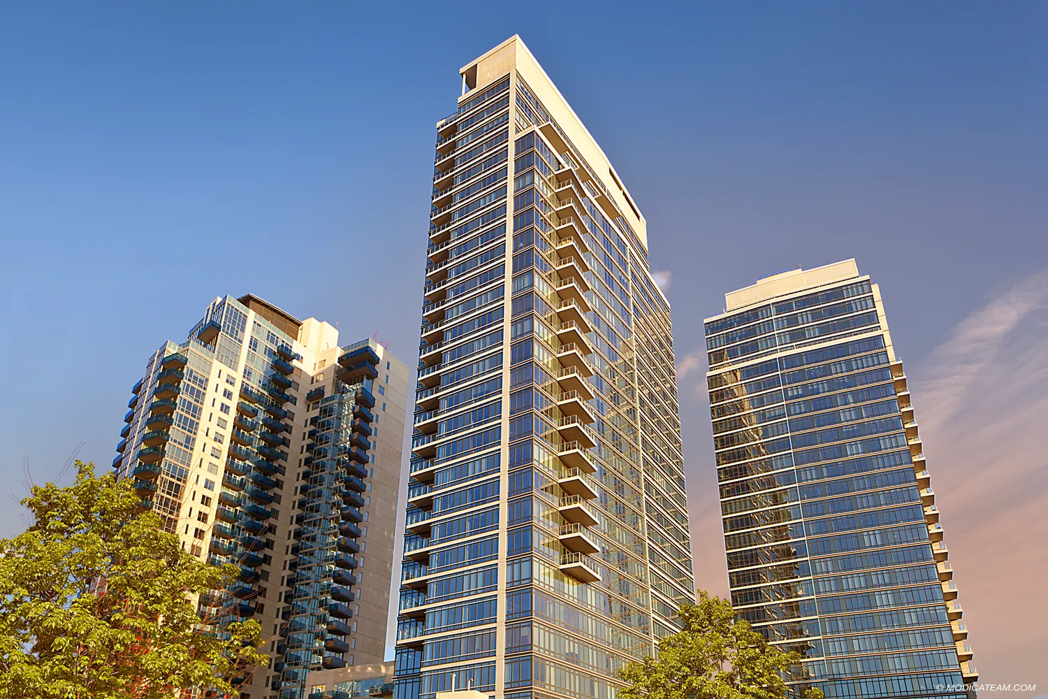 The building amenities include an indoor pool with outdoor lounge area and hot tub, 24-hour doorman and concierge, roof terrace, sundeck, fitness centers with yoga room and sauna, residents’ lounge, children’s playrooms, parking and a waterfront esplanade and pier.