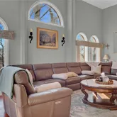 - Room Description: Chandelier, Custom stained window treatments