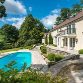 - Public Remarks: Rockefeller walls border this private and ideally located property near town. With a 2007 custom gut renovation, this classically designed and beautifully presented home is generously scaled for family and entertaining accommodation and is situated on three south facing parklike acres. The double height front hall, with marble floor and stairs, leads to a spacious and stylish living room, elegant dining room, study with built-ins, large kitchen and adjacent step-down family room with wet bar. Each has French doors that lead to rear terraces that overlook a sparkling pool and parklike grounds. Upstairs there is a luxurious master suite with adjacent sitting room, dressing room and marble bath. Four additional bedrooms and 3 bathrooms. Finished room on 3rd floor. Wine cellar. Exceptional.