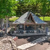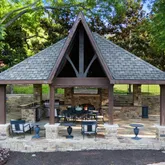 - Exterior Features: Attached Grill, Barbecue, Built-in Barbecue, Covered Patio/Porch, Fire Pit, Garden(s), Rain Gutters, Lighting, Outdoor Kitchen, Outdoor Living Center, Permeable Paving, Private Yard, Storage
