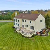 This beautifully upgraded 4-bedroom, 4.5-bath Toll Brothers home offers luxury, space, and modern convenience. Enter through a grand 2-story foyer with elegant trim work and new wood flooring that flows into the formal living and dining rooms. A custom home office with built-ins sits just off the foyer. The newly renovated gourmet kitchen features granite waterfall countertops, custom backsplash, all-new stainless-steel appliances, 42” cabinets, and new sliding doors leading to a multi-level Trex deck with scenic backyard views. The impressive 2-story family room offers soaring ceilings, a stone gas fireplace, and abundant natural light. Upstairs, the spacious primary suite includes a sitting room, huge walk-in closet, and a fully renovated European-style bathroom with new vanities and LED mirrors. A princess suite and a Jack-and-Jill suite complete the upper level. The fully finished basement features new flooring, high ceilings, large recreation areas, a wet bar, an entertainment room with built-in bar, and a full bathroom—perfect for hosting or extended living. Additional upgrades include: