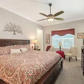 - Interior Features: Ceiling Fan(s), High Ceilings, Open Floorplan, Primary Bedroom Main Floor, Solid Wood Cabinets, Stone Counters, Walk-In Closet(s)