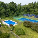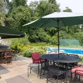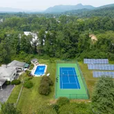 - Exterior Features: Tennis Court(s), Lighting, Privacy, Pool - In Ground, Porch, Deciduous Shade Trees, Mature Landscaping, Fenced Yard, Hot Tub Outdoor, Landscaped, Outbuilding, Patio