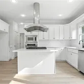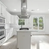 - Kitchen Features: Cabinets White, Kitchen Island, Solid Surface Counters, Stone Counters, View to Family Room