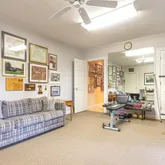 - Interior Features: Master Downstairs, Tray Ceiling(s), High Ceilings, Entrance Foyer, Solid Surface, Ceiling Fan(s), Pantry, Walk-in Shower, Basement, Gas Log, Workshop