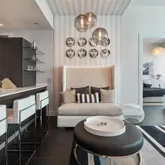 professionally fully furnished and fully equipped. Enjoy the breathtaking & beautiful city views. One assigned parking space and deeded storage. Full-service building, with state of the art gym, wellness center with treatment rooms, sauna, conference room, 6 sparkling pools and bar area and meeting's room. Exquisite restaurant Zuma is located in the building. Elevated living in the heart of downtown...This elegant, beautiful, and unique residence is offered with amazing 2 Bedrooms and 2.5 bathrooms,