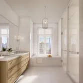 The design of the residences at 200 East 83rd is contemporary, honoring classicism with a fresh approach. Abundant light streams in, complementing the tailored interiors by award- winning designer Rottet Studio that are anchored with white oak flooring. The commitment to design excellence can be felt in each room and at every opportunity, especially in the kitchens, which feature honed Calacatta Elba marble countertops and backsplashes and marrying state- of-the-art technology, top appliances (Miele and Sub-zero) and beautiful craftsmanship. Primary bathrooms feature custom stone floors and white Dolomiti walls and vanity top, complemented by warm wood cabinetry and Waterworks hardware. Rain showers, and heated floors infuse every day with luxury.