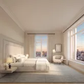 In the tower, a seventy- foot swimming pool is the centerpiece of a collection of comprehensive wellness and entertainment spaces including a fitness center, yoga room, spa with steam bath and sauna, and a Winter Garden with a charming fireplace and a dramatic loggia. At ground level, beyond the gates of the porte-cochère, is a concealed automated parking system. Beyond that, a view to a landscaped private garden. An adjacent library and private cinema underline a dedication to fine materials and an uncompromising attention to detail. The lobby will be attended 24-hours a day with a doorman and concierge service.