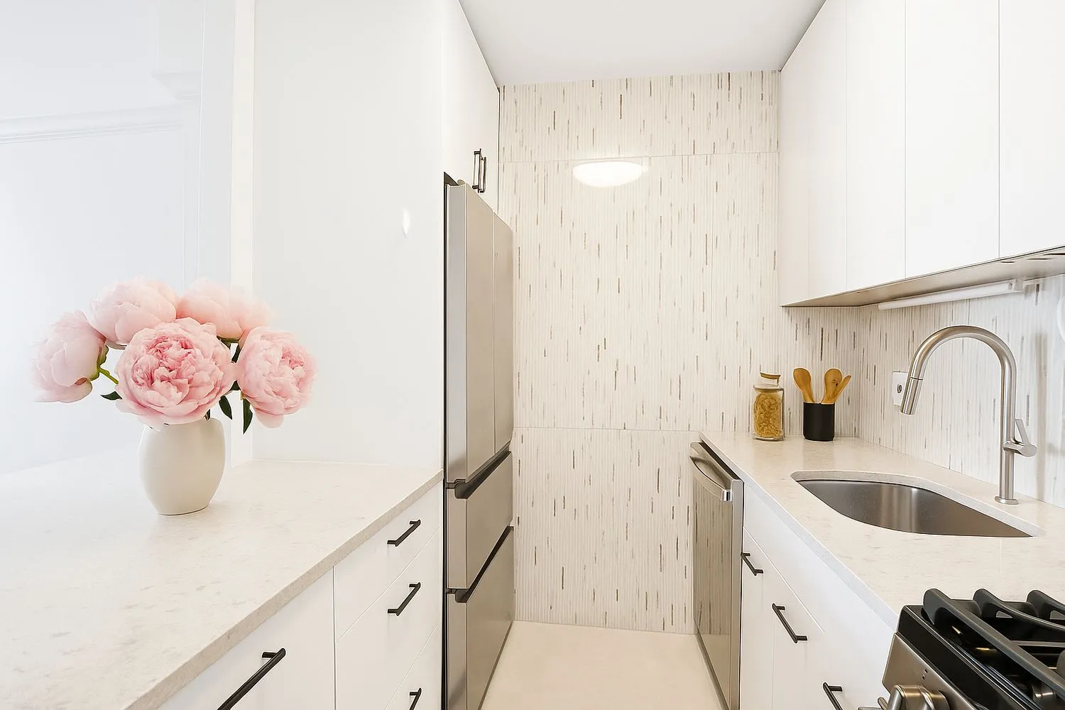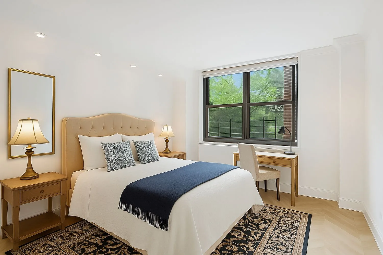 This graciously proportioned apartment features a spacious living and dining area highlighted by an oversized east-facing bay window that floods the space with natural light. The brand-new kitchen is equipped with sleek appliances, abundant cabinetry, and a convenient breakfast bar — perfect for casual dining or entertaining guests.