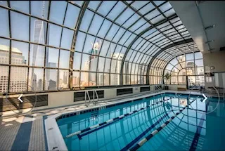 fitness center, with a swimming pool and sundecks.