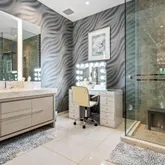 - Interior Features: Custom Mirror, Entry Lvl Lvng Area, Pantry, Split Bedroom, Volume Ceiling, Walk-in Closet