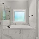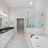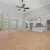 - Interior: Vaulted Ceiling(s), High Ceilings, Double Vanity, Beamed Ceilings, Separate Shower, Tile Bath, Walk-In Closet(s), Master On Main Level, Split Bedroom Plan