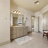 The secondary primary suite is truly exceptional, filled with natural light and highlighted by a private balcony overlooking the 18th fairway. Its en-suite bath features a distinctive His and Hers layout, including dual toilets.
