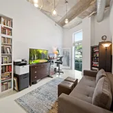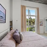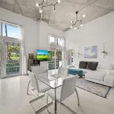 an open living area, in-unit washer/dryer, ample closet, storage space & limestone flooring. Brand new motorized window shades just installed November 2024! The fenced-in courtyard provides a private outdoor space, & the 1 assigned spot in the garage adds convenience. Residents also enjoy access to building amenities...Rarely available Villa at The Meridian! This residence offers a unique loft-style living experience in the heart of Miami Beach. With 2 beds, 2.5 baths, & 14-foot ceilings, this condo boasts