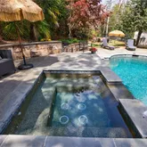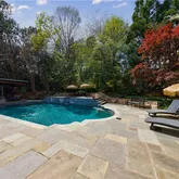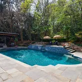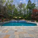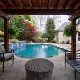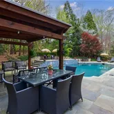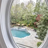 Upon entering through the elegant French doors, you'll be welcomed...Discover this exceptional estate home in the prestigious COUNTRY CLUB of the SOUTH, offering a luxurious walkout pool and spa directly from the main level. The secluded backyard oasis features a waterfall spillover from the elevated hot tub spa, ample green space for outdoor games, and a charming gazebo cabana perfect for shaded relaxation and outdoor entertainment. The pool surround features blue stone slate creating beautiful setting.