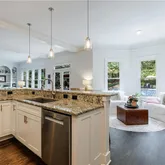 - Kitchen Features: Breakfast Bar, Breakfast Room, Cabinets White, Keeping Room, Kitchen Island, Pantry, Stone Counters, View to Family Room