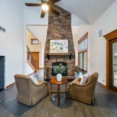 - Fireplace Features: Wood Burning, Gas Starter, Masonry