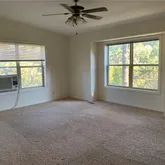 - Room Description: Carpet, high ceiling, large picture windows, window A/C, ceiling fan
