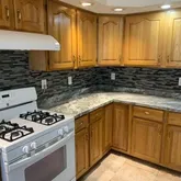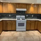 - Room Description: 18" tile floor, high ceilings, brand new countertops and glass backsplash, custom lighting, solid oak cabinets, newer appliances