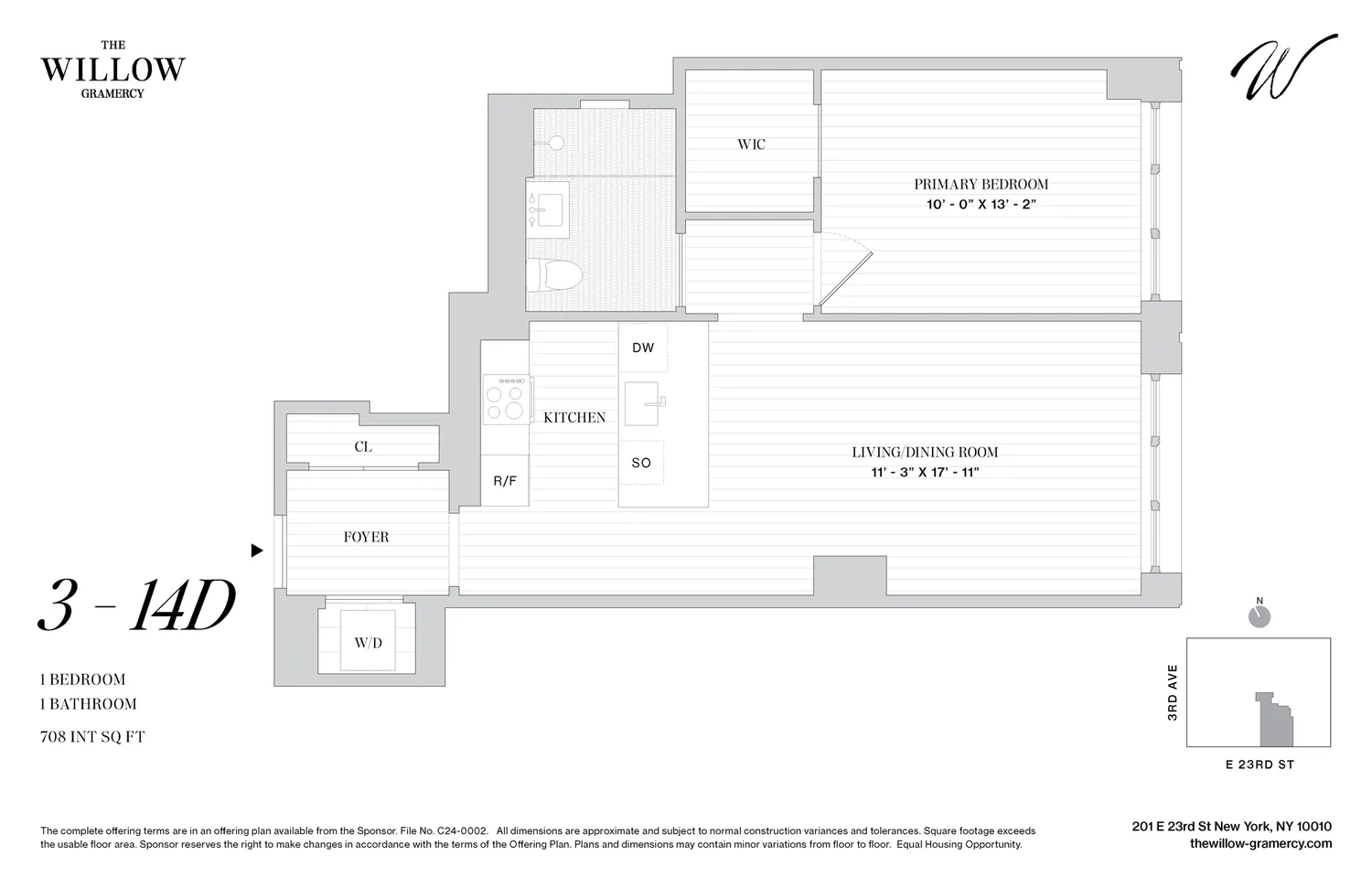 Each amenity space at The Willow has been meticulously designed by Rockwell Group to create an intimate, club-like atmosphere. The light-filled library, featuring a sleek contemporary fireplace, opens directly to the beautifully landscaped Courtyard Garden. The fitness center and adjacent cedar-clad sauna embrace a light aesthetic, offering residents a peaceful space for wellness. The cinema provides cozy seating, while the Glamercy Music Room offers the ideal environment for practicing, playing, and enjoying instruments. On the Rooftop Terrace, residents can enjoy grilling stations, dining, and lounging areas, all while taking in panoramic city views. Additional amenities include the Mermaid Room for socializing, adjacent to the cinema, and a Children’s Playroom. The lobby is attended 24 hours a day by a doorman. The complete offering terms are in an offering plan available from the sponsor, file number C24-0002