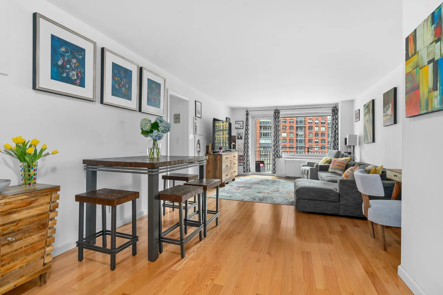 Upon entering, you are greeted with a massive living room which provides plenty of space as a comfortable haven for everyday living as well as entertaining and separate dedicated dining area...Introducing Apt. 7H, a fully renovated one bedroom oasis perfectly nestled between Lincoln Square and the Upper West Side. This thoughtfully designed, inviting home offers an extraordinary lifestyle with inspiring open City views, tasteful finishes, excellent sunlight and an enviable oversized private balcony.
