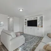- Room Description: Nicely custom built in entertainment center with plenty of storage & bookshelves to display items. Current TV and wall mount convey.