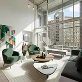 Step into the open layout with high ceilings and floor to ceiling glass, where sleek concrete, exposed brick and hardwood floors create both a warm and polished aesthetic. The recently renovated kitchen is a chef’s paradise, boasting quartz countertops, a center island and dry bar with wine cooler. Its open design flows seamlessly into the living area, making it perfect for entertaining or relaxing in style. Step outside onto your balcony to enjoy the vibrant energy of the city or unwind after a long day.