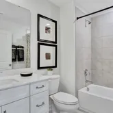 is an open concept design that lives like a single family home, with features including gourmet kitchen with 5 burner gas cooktop and stainless steel hood, electric car charger outlet, quartz countertops, soft close cabinets and drawers throughout, laundry room with soaking sink. All within a short walk to Alston Ridge Elementary and Middle Schools. Promotional interest rate available through in-house lender. Free GE washer, GE dryer, counter-depth refrigerator and Blinds for all windows!
