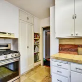 - Kitchen: Cooktop - Gas, Countertop - Formica, Countertop - Tile, Hood Over Range, Refrigerator