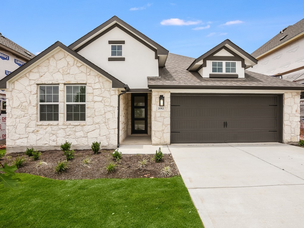 Stunning “Taylor” home with modern finishes, striking rotunda entrance, separate office, dramatic 10' ceilings and 8' interior doors. An open chef’s kitchen with modern built-in stainless steel appliances and spacious island open to the family. Master retreat with relaxing spa bathroom, freestanding tub, separate walk-in shower and separate vanities. This home also includes a 3' rear extension, extended covered patio, pre plumb for water softener and gas stub. Zoned to Georgetown ISD.