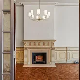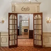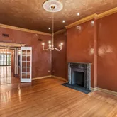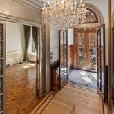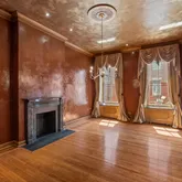 The Parlor Level’s wide entry gallery, grand staircase and 11.5 foot mirror framed in 24-carat gold welcomes you to the home, setting the stage for the glorious charm of yesteryear with original doors, fireplace mantels, flooring, and moldings—each telling stories of their own. The first floor greets you with impressive 12.5-foot ceilings and one of the nine fireplaces that grace this home, creating an atmosphere of warmth and sophistication.