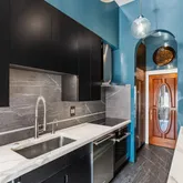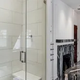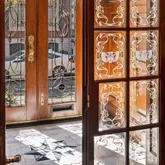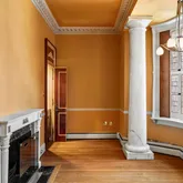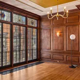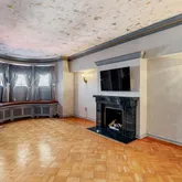 The second floor receives you with an opulent hall and features a new Johanne Hudson kitchen with Calacatta Gold and Pietra del Cardosa slabs, an expansive dining room with Venetian plaster walls, original french doors and perched at tree level, a remarkable 600 SqFt great room of your dreams with an original fireplace mantle, paneling, figurines, moldings and stained glass under inspiring 10.5-foot ceilings. Tucked at the rear of the floor is a bar room where peeling off to pour your guests a drink is a breeze. Share a cocktail and admire the fireplace, columns and rounded window bay that adorn this room.