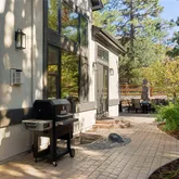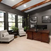 The formal dining room sets the stage for elegant entertaining. Two sets of 8-foot French doors open to custom studies—perfect for remote work or creative pursuits. The chef’s kitchen features a spacious island, sub zero fridge, new dishwasher and a bright breakfast nook, ideal for both everyday living and special occasions. Step outside to a private patio retreat with a soothing water feature for ultimate relaxation.