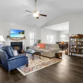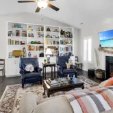 Discover exceptional comfort and thoughtful design in this beautifully appointed 3-bedroom, 2-bath home with a finished bonus room—perfect as a 4th bedroom, home office, or flex space. Located in the sought-after Bluewater Rise neighborhood, this home combines upgraded features with timeless style and easy living. The inviting family room centers around a gas log fireplace framed by custom built-in cabinets, creating a warm and welcoming gathering space....Beautifully Upgraded Home in Bluewater Rise