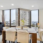 Walk into This large two bedroom, two bathroom unit to find a gallery foyer with a large outfitted coat closet, an open layout kitchen overlooking the living room, 11th floor gorgeous city views from floor to ceiling bay windows and a generously sized dining and living room. The large master bedroom offers excellent walk-in closet space, an en-suite bathroom, bay window, and a stackable washer and dryer. The second bedroom also has a bay window and has easy access to the adjacent hallway bathroom. This unit is truly one of the nicest ones in the building.